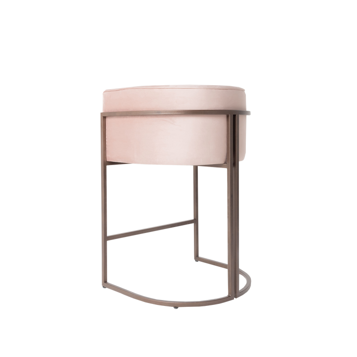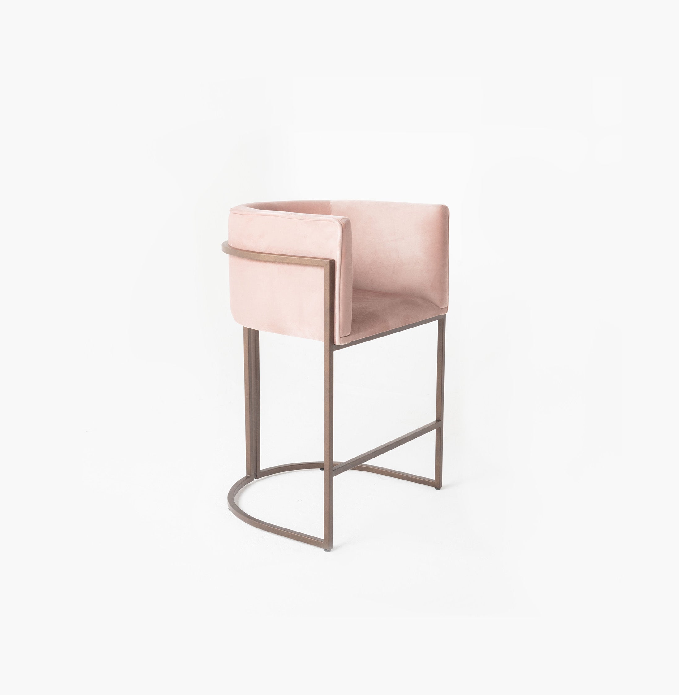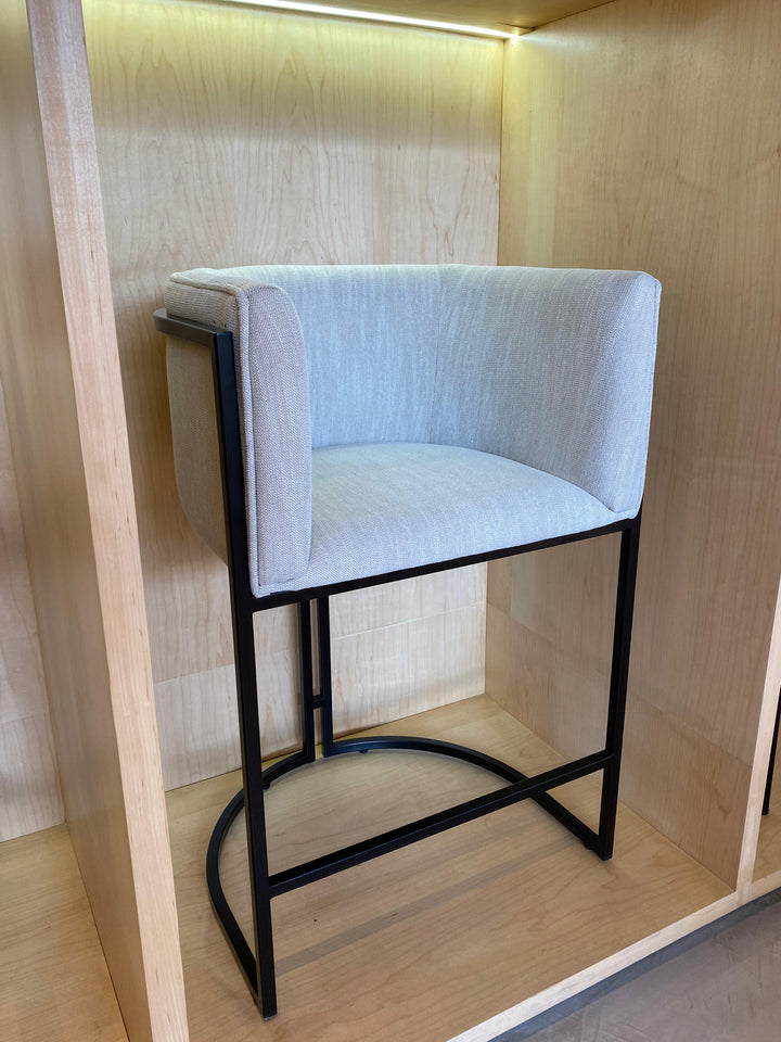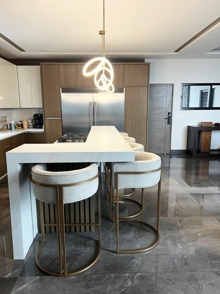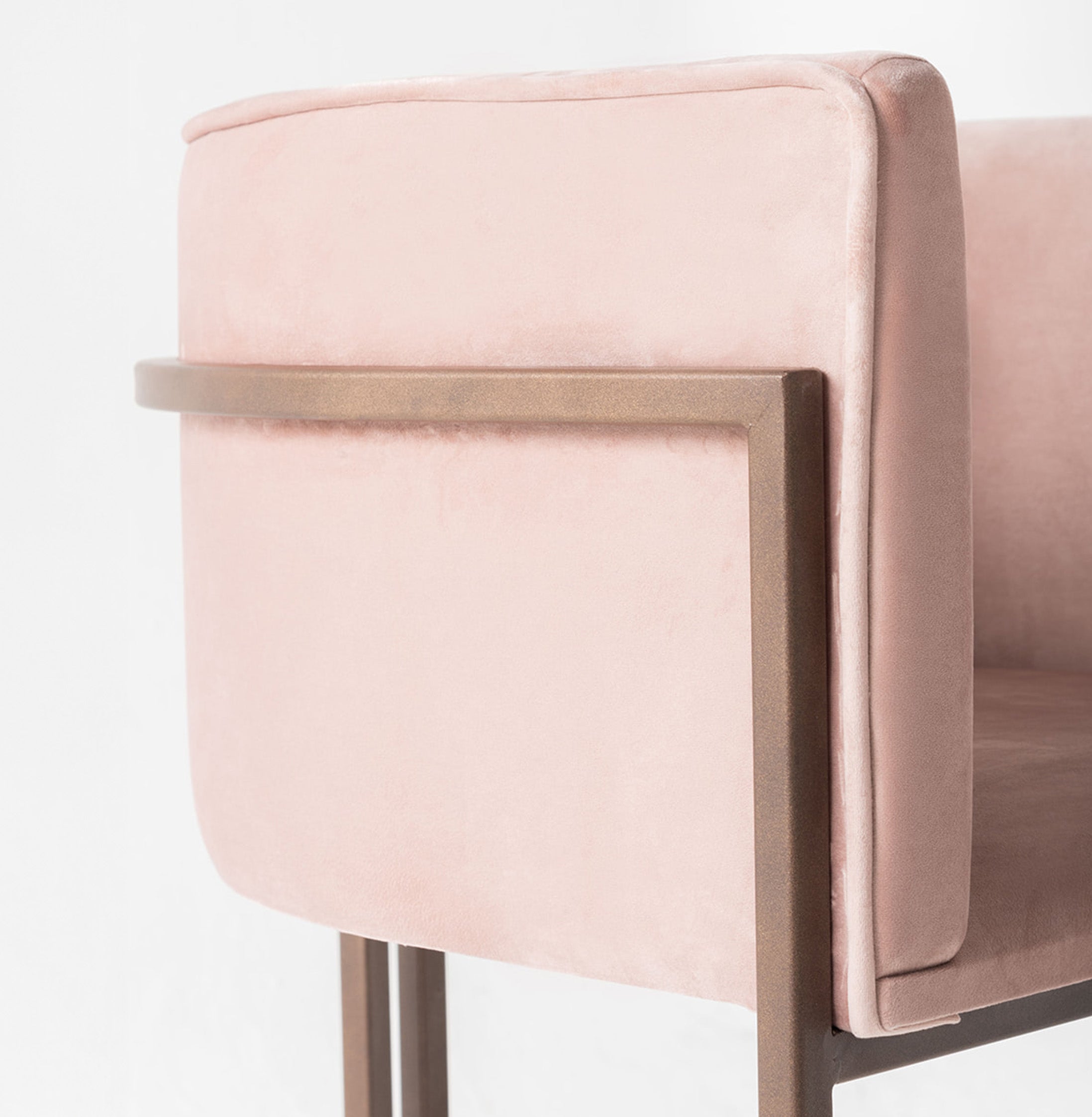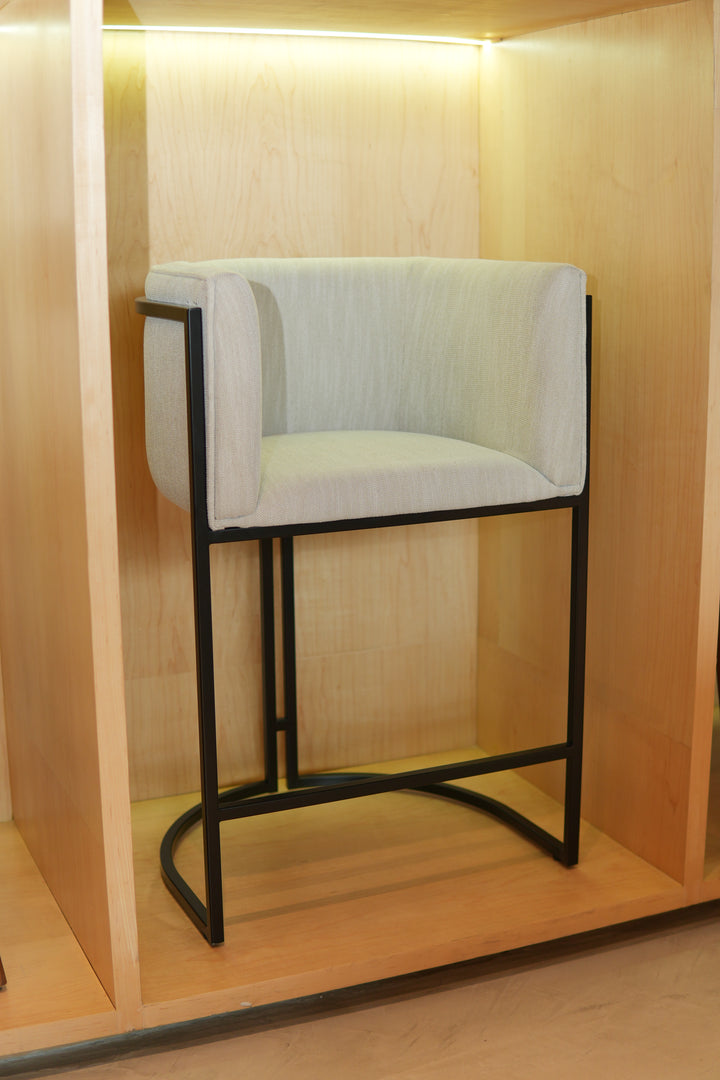 Banca con estructura de acero resistente y acabado en pintura electrostática horneada, que asegura durabilidad y un aspecto impecable. El asiento y respaldo incorporan domos de madera de pino, recubiertos con espuma de densidad media y tapizados con telas de alta calidad que aportan confort y un estilo elegante.