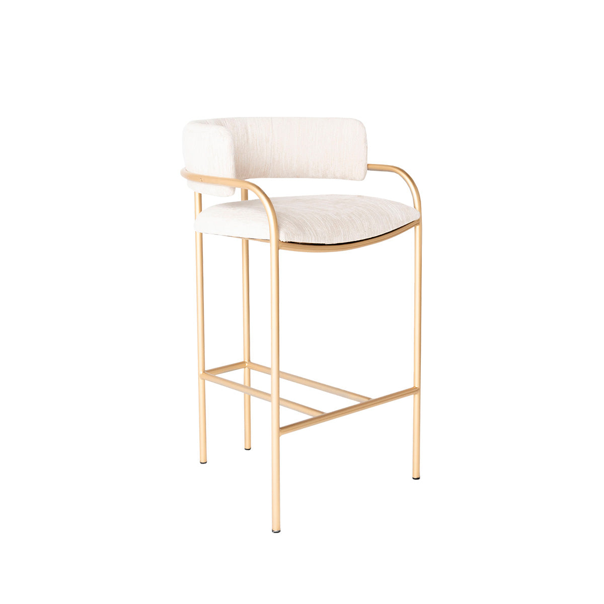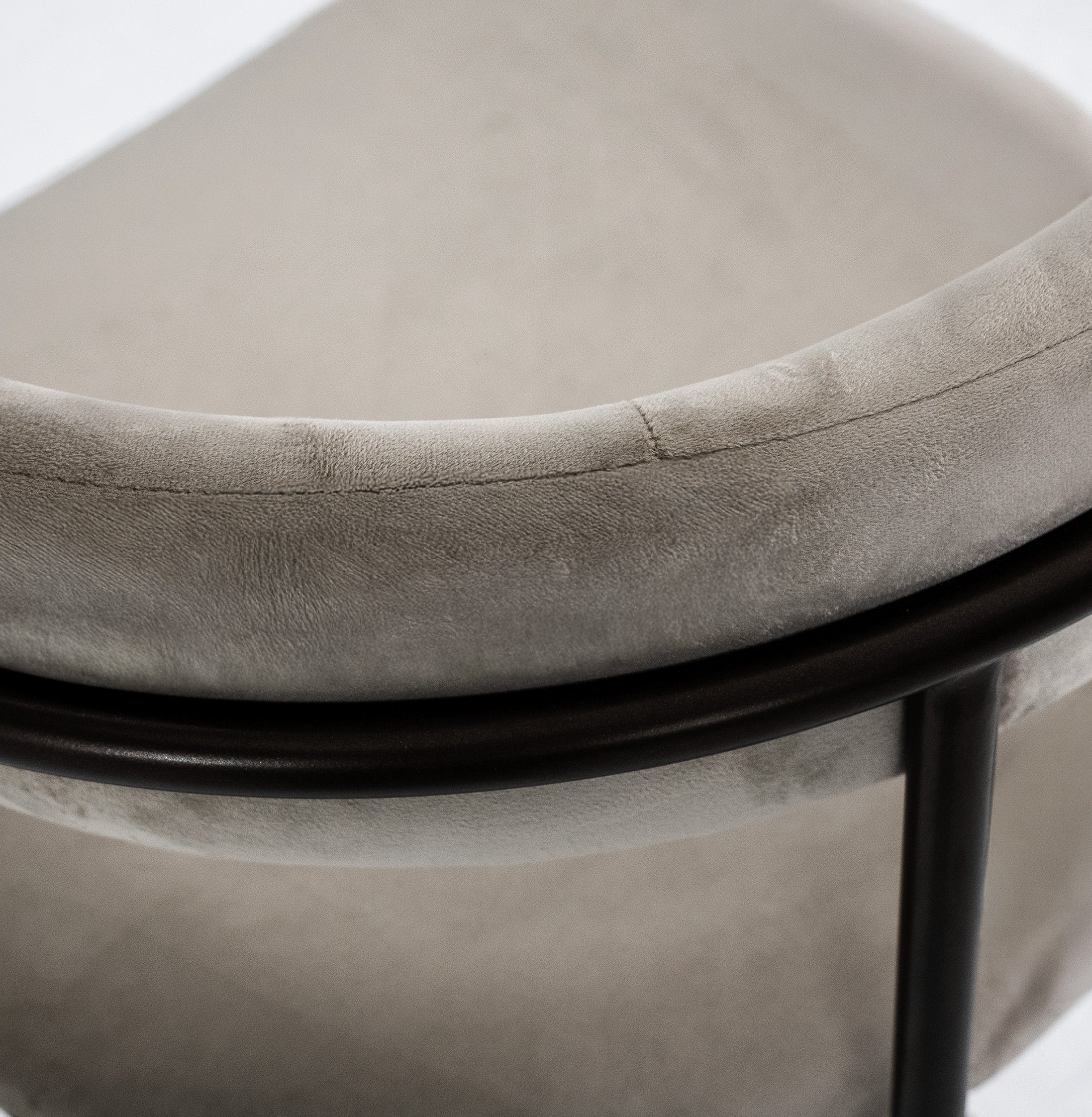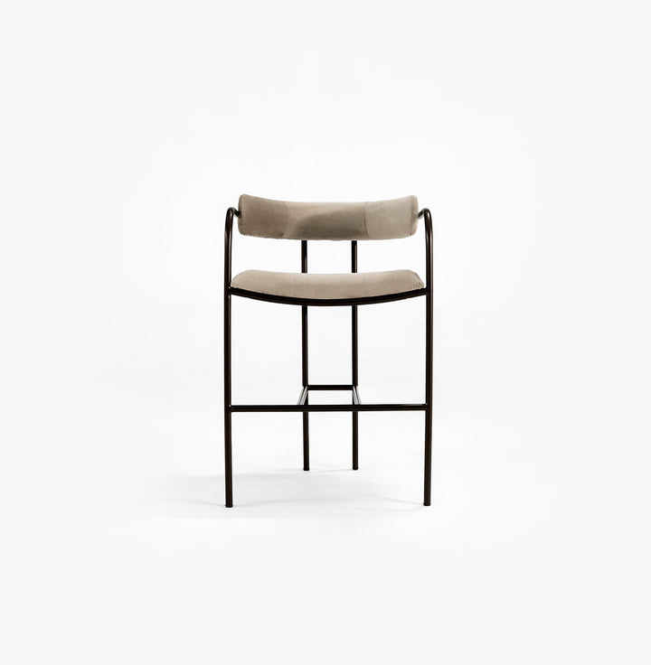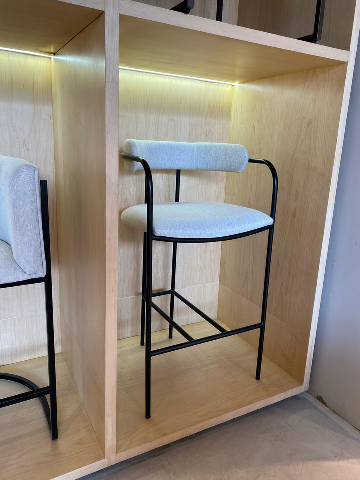 Banca elaborada con estructura de acero y acabado en pintura electrostática para una mayor resistencia y durabilidad. Cuenta con respaldo y asiento de madera con diseño de domos, recubiertos con espuma de densidad media y tapizados en tela de alta calidad que brinda confort y un acabado sofisticado.