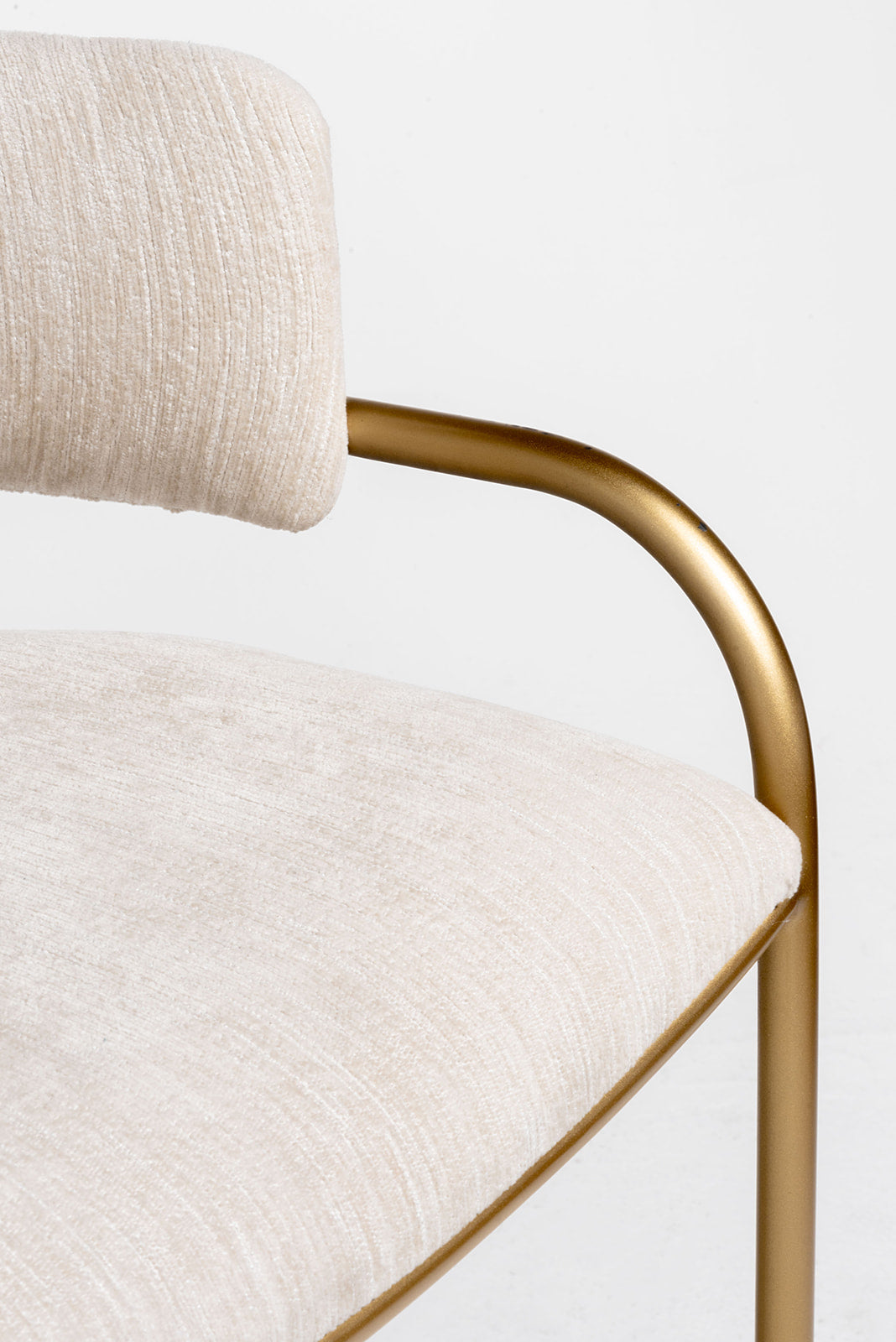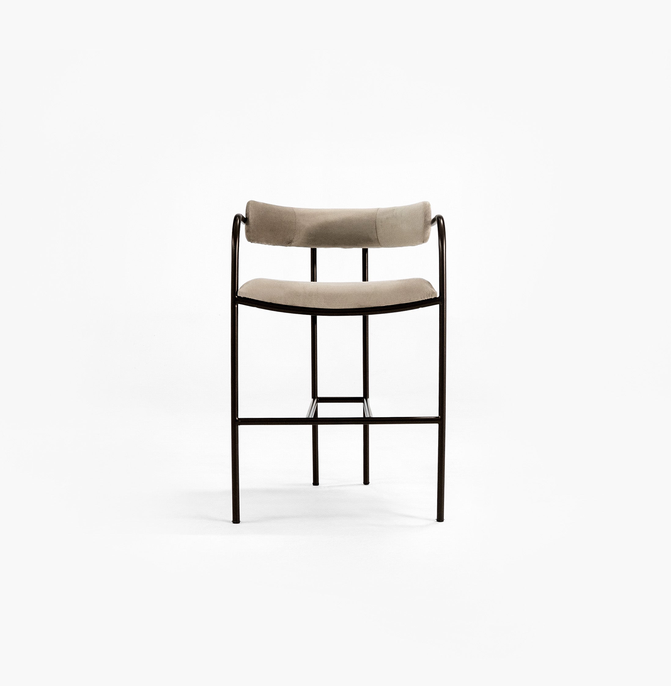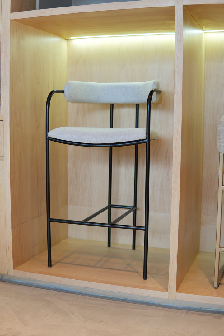 Banca elaborada con estructura de acero y acabado en pintura electrostática para una mayor resistencia y durabilidad. Cuenta con respaldo y asiento de madera con diseño de domos, recubiertos con espuma de densidad media y tapizados en tela de alta calidad que brinda confort y un acabado sofisticado.