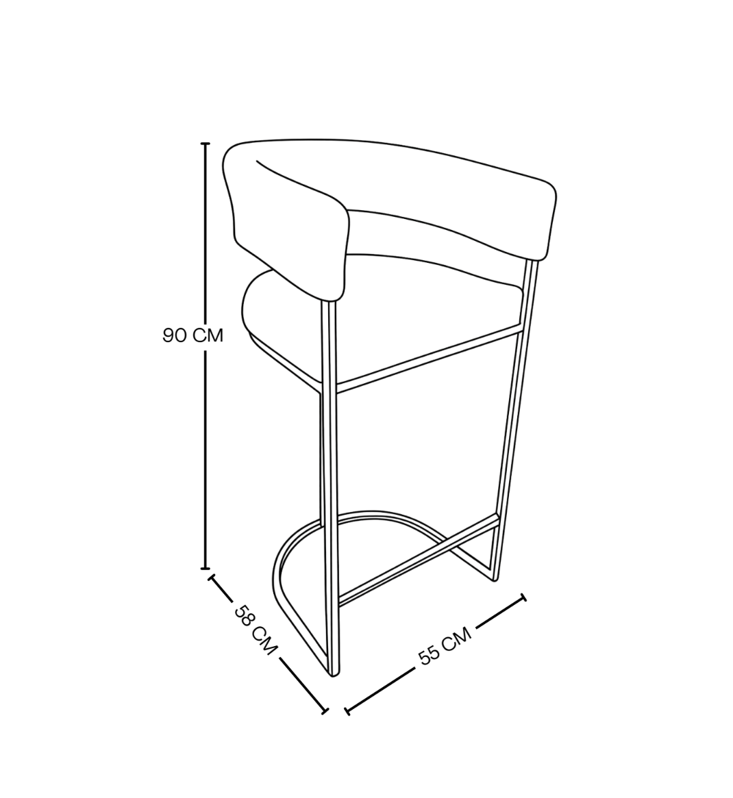 Base fabricada en herrería con acabado electrostático en color oro, que aporta un toque de sofisticación y estilo contemporáneo. El diseño se complementa con un bastidor en madera sólida de pino, tapizado en la tela de tu elección, ofreciendo un equilibrio perfecto entre resistencia, confort y estética.