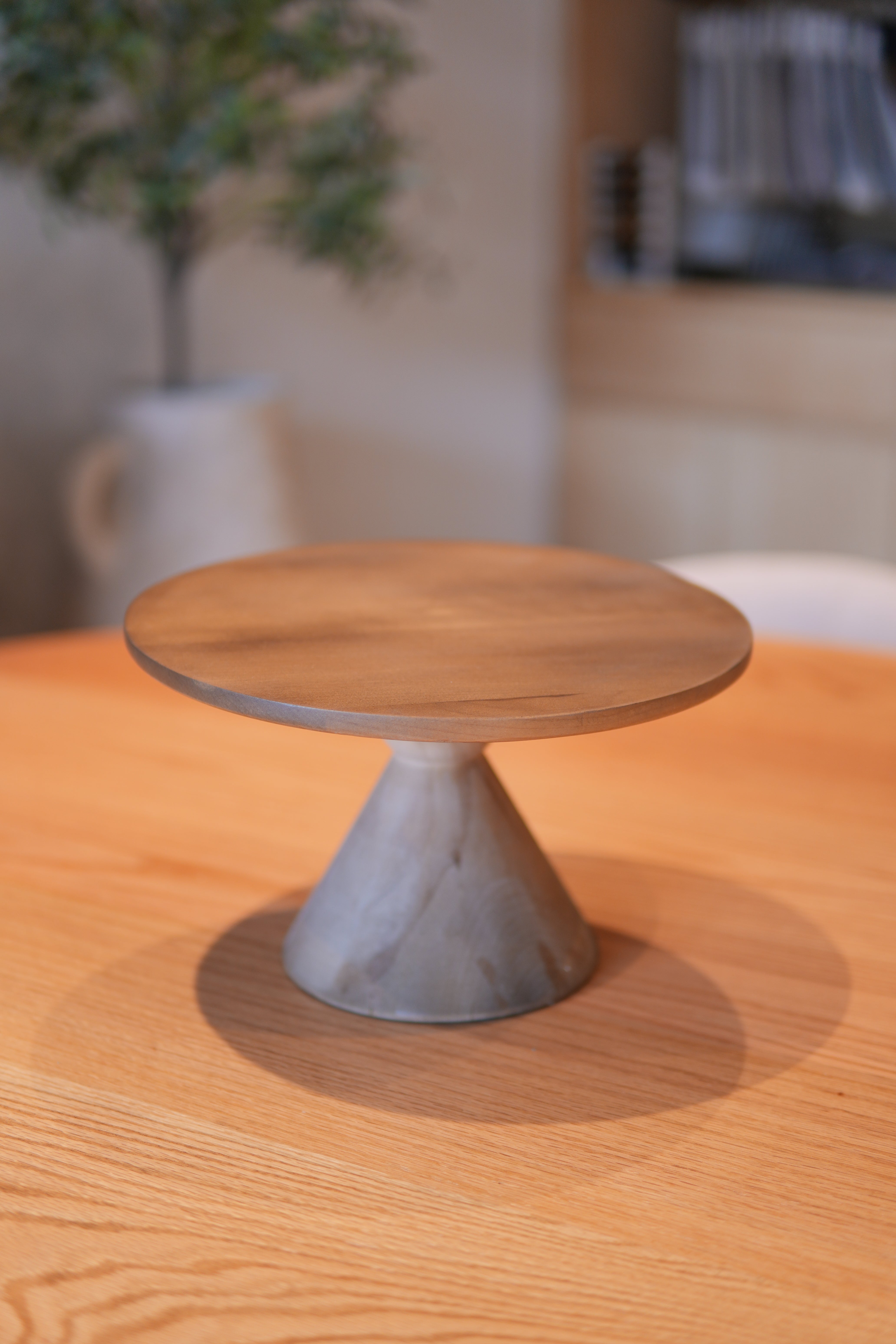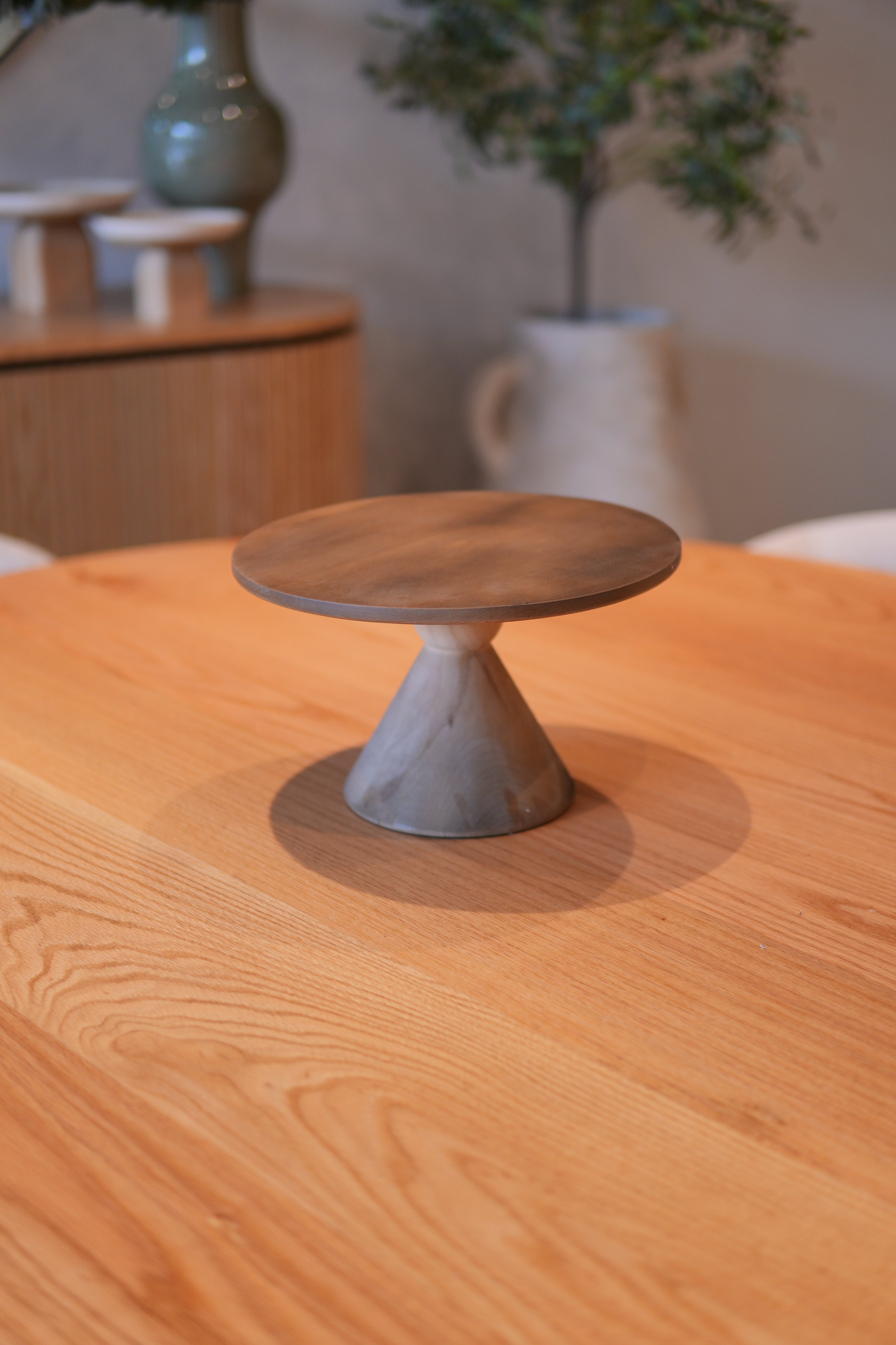 Base para pasteles japandi en madera acabado natural.