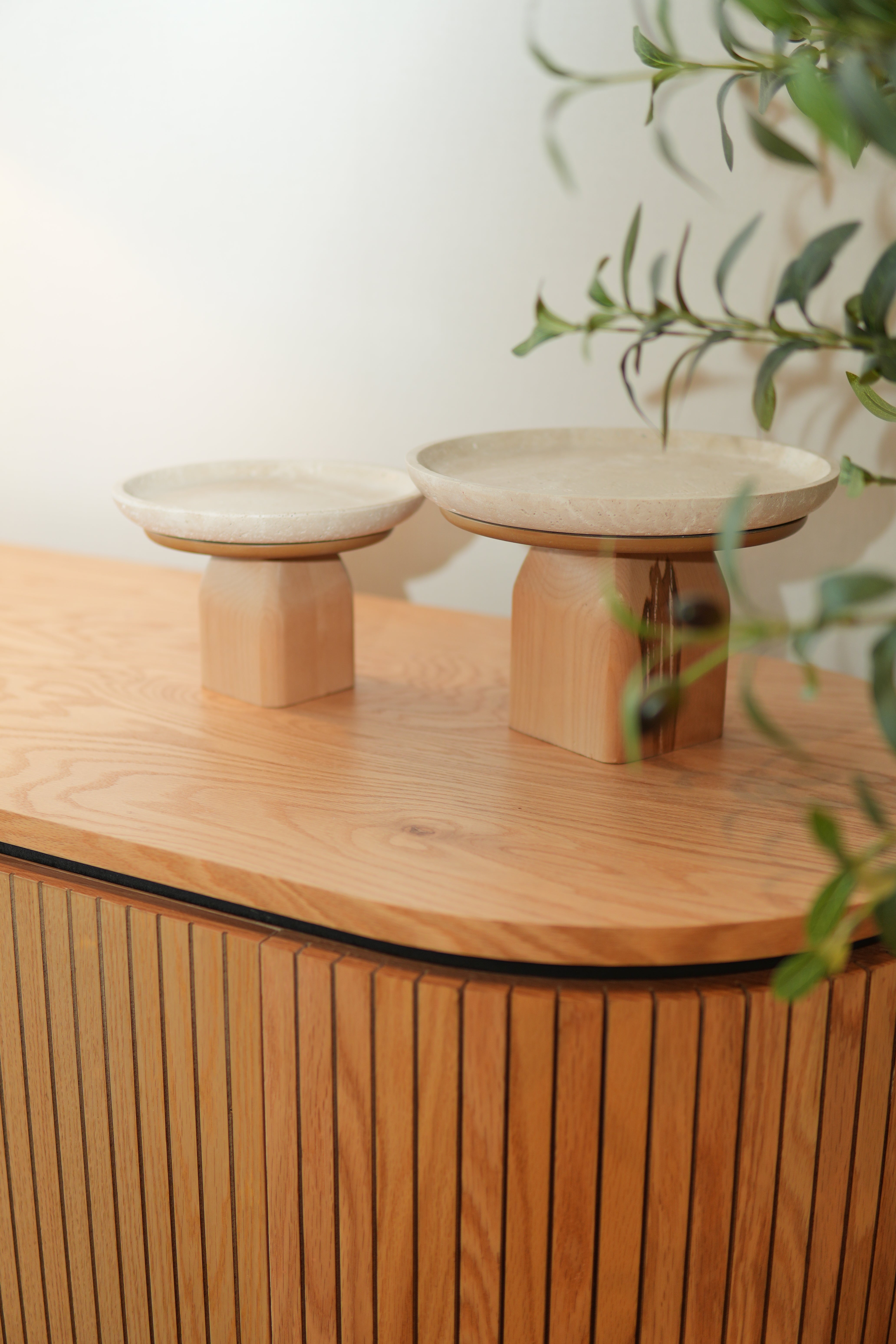 Charola decorativa de madera y mármol