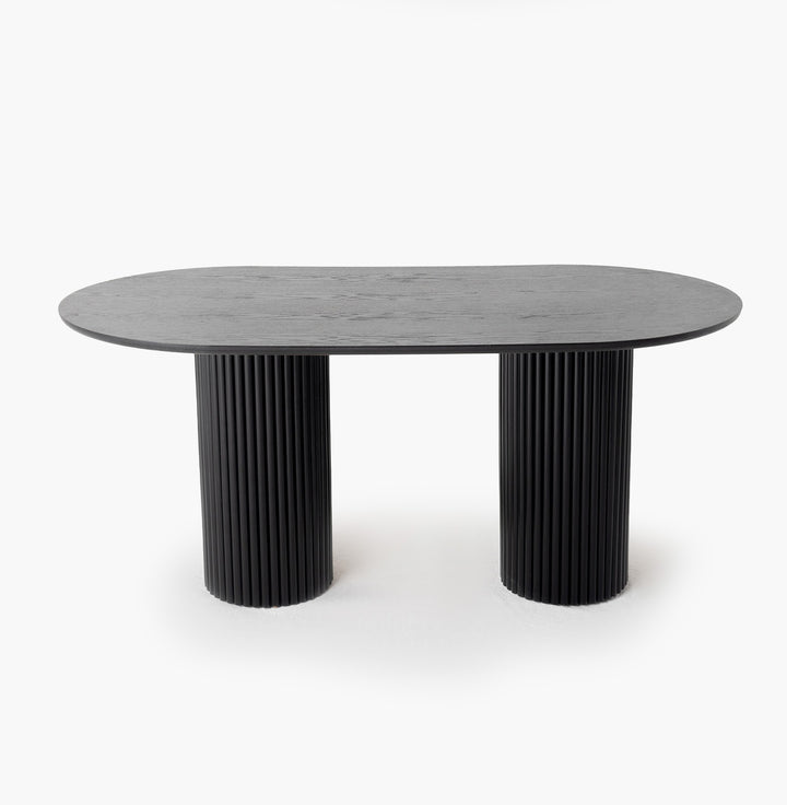 Base elaborada con estructura sólida de madera de pino, recubierta con finas tiras de MDF en acabado de poliuretano de alta resistencia, que brinda durabilidad y un acabado impecable. Su superficie cuenta con chapa natural de encino en una cara, protegida con laca en el color de tu elección, lo que permite personalizarla según tu estilo.
