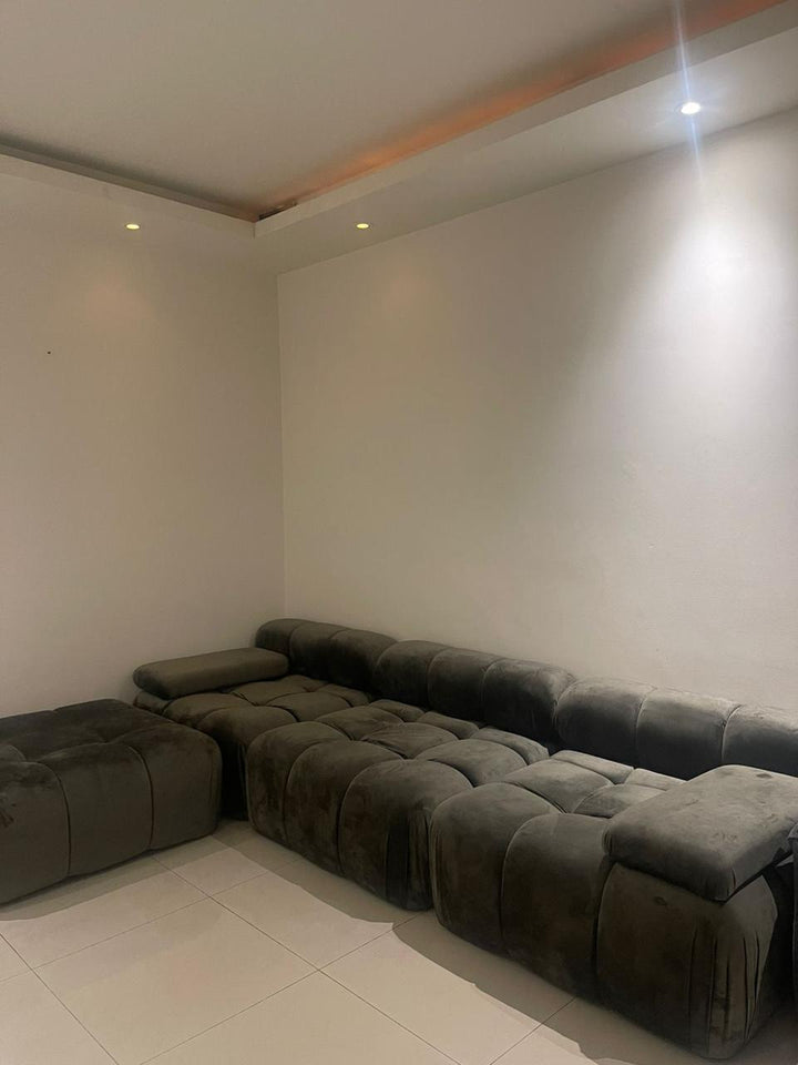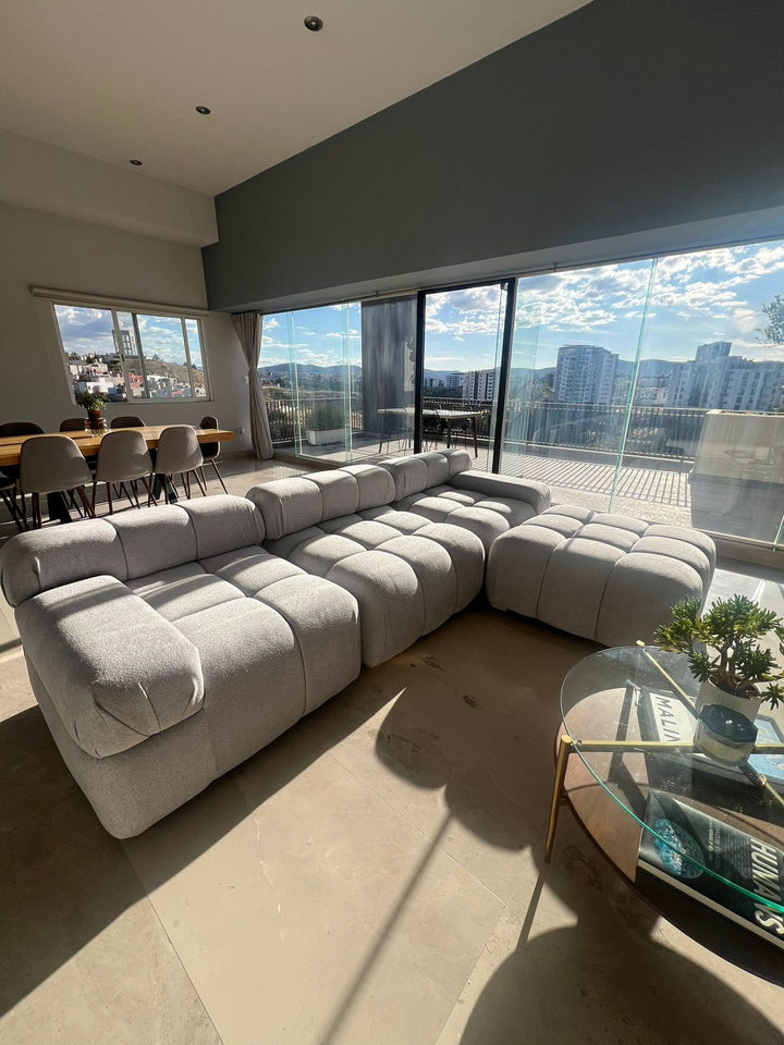 Esta sala modular de diseño contemporáneo destaca por su versatilidad y confort. Está compuesta por varios módulos que se pueden reconfigurar para adaptarse a diferentes espacios y necesidades.