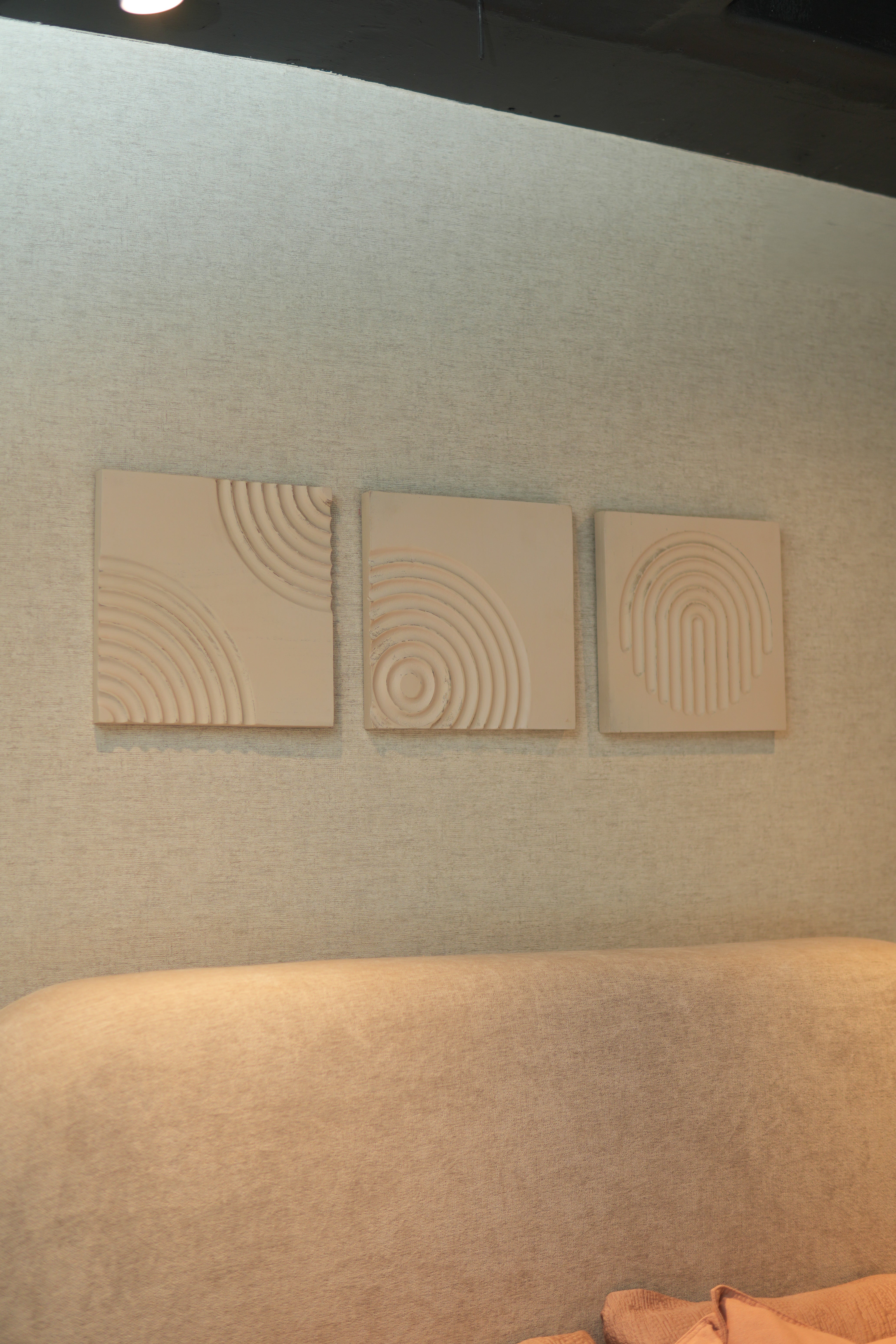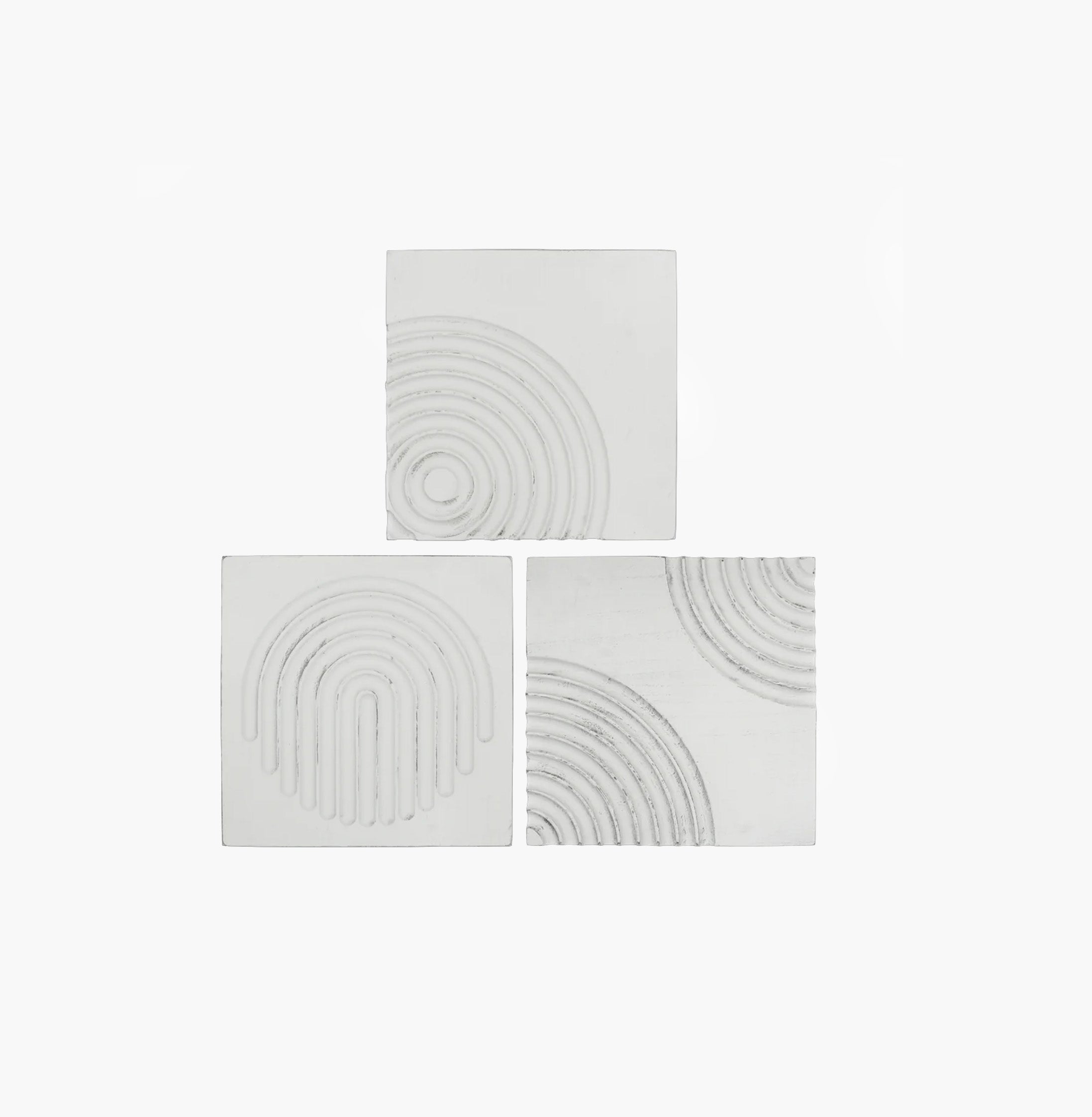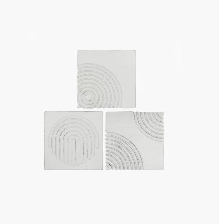 Set de 3 cuadros de madera ondas, en acabado blanco