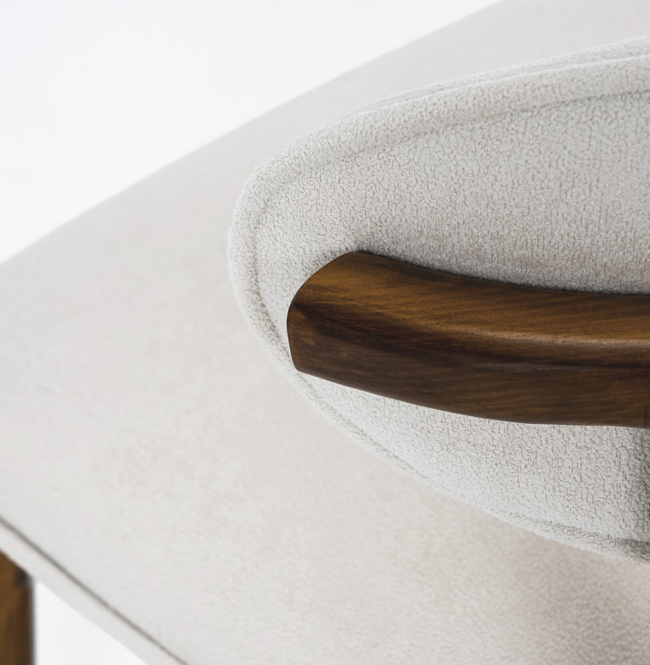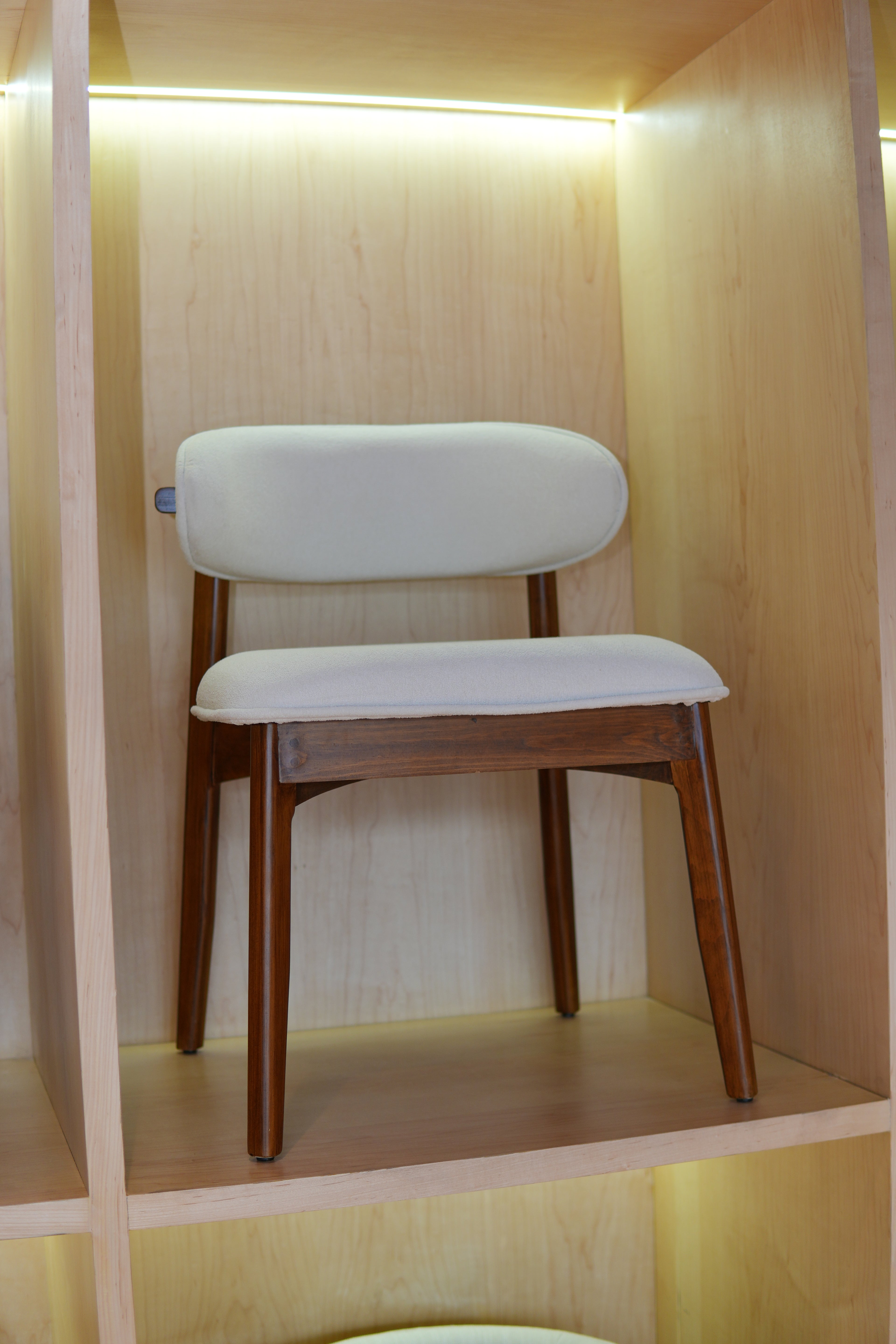 Estructura elaborada en madera sólida de pino con acabado en tono nogal o negro, que aporta calidez y estilo natural. El asiento y respaldo están confeccionados con espuma de media densidad, ofreciendo un equilibrio ideal entre confort y soporte. Tapizado en la tela de tu elección, este diseño combina elegancia atemporal y comodidad para integrarse a la perfección en cualquier ambiente.