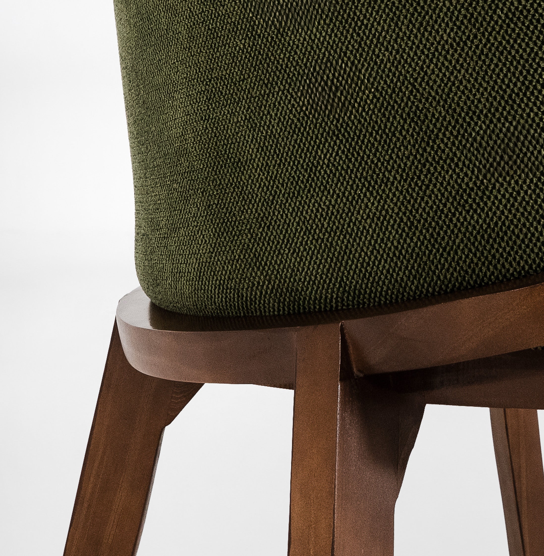 Fabricada con madera de pino y recubierta con espuma para mayor comodidad, esta silla combina resistencia y confort. Su tapizado puede personalizarse con diferentes telas, colores y acabados, adaptándose al estilo de cada espacio. Con su diseño versátil y toque artesanal, aporta calidez y personalidad a cualquier ambiente.