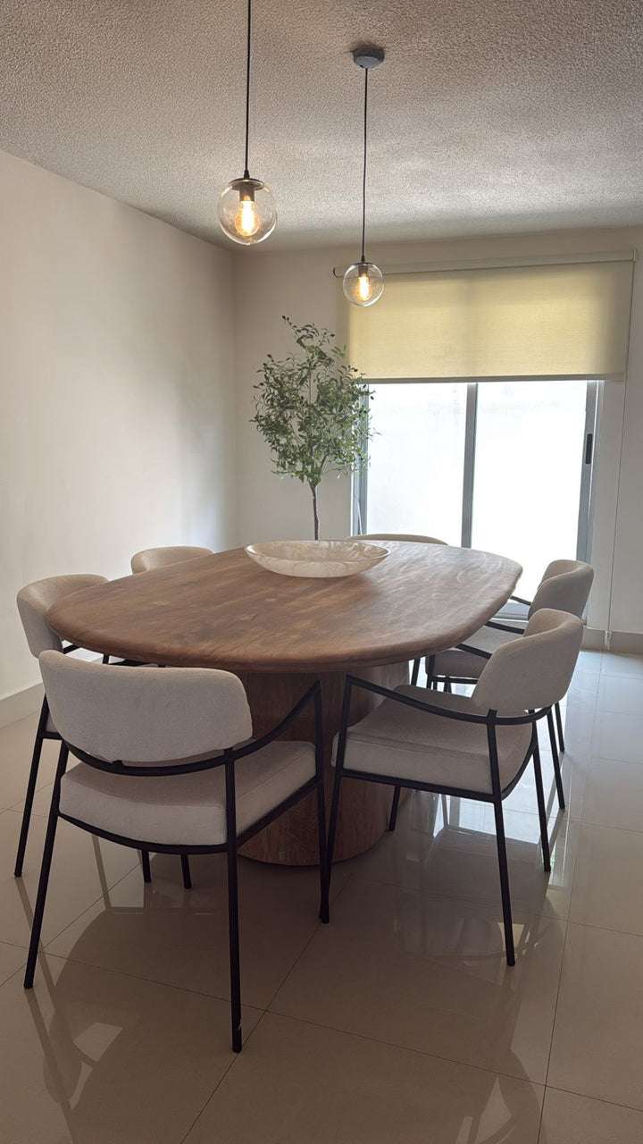 Estructura robusta y estilizada con base en herrería de acabado electrostático, que garantiza durabilidad, resistencia y un mantenimiento sencillo, disponible en el color de tu preferencia.