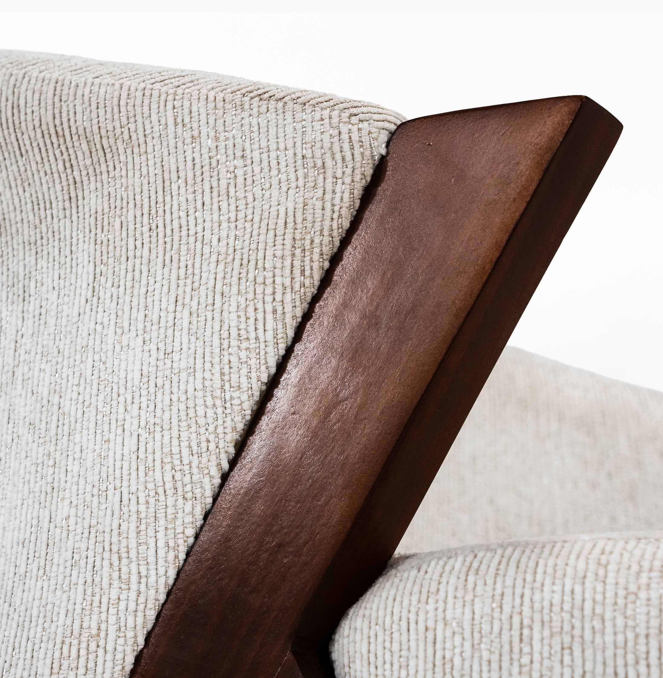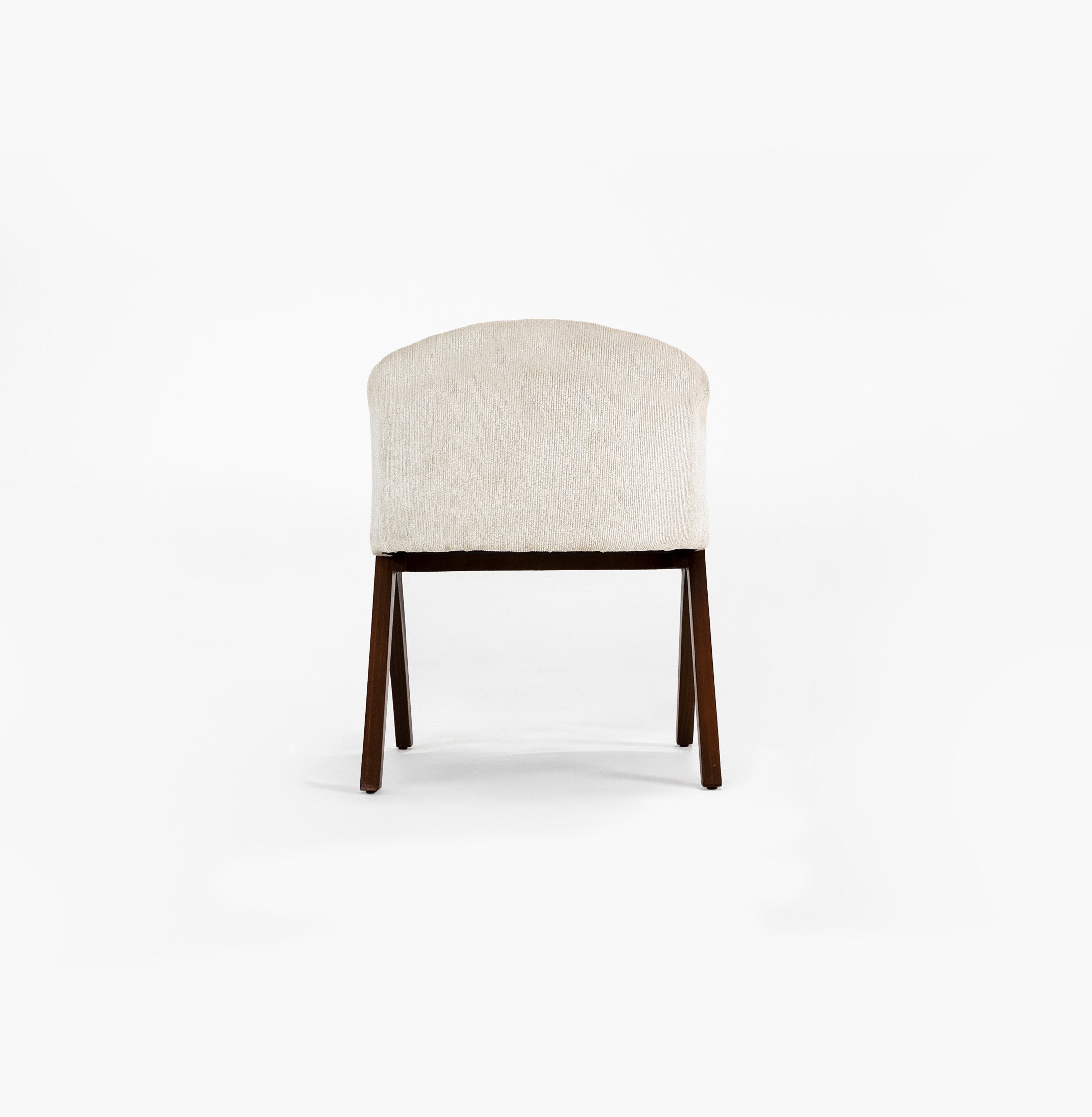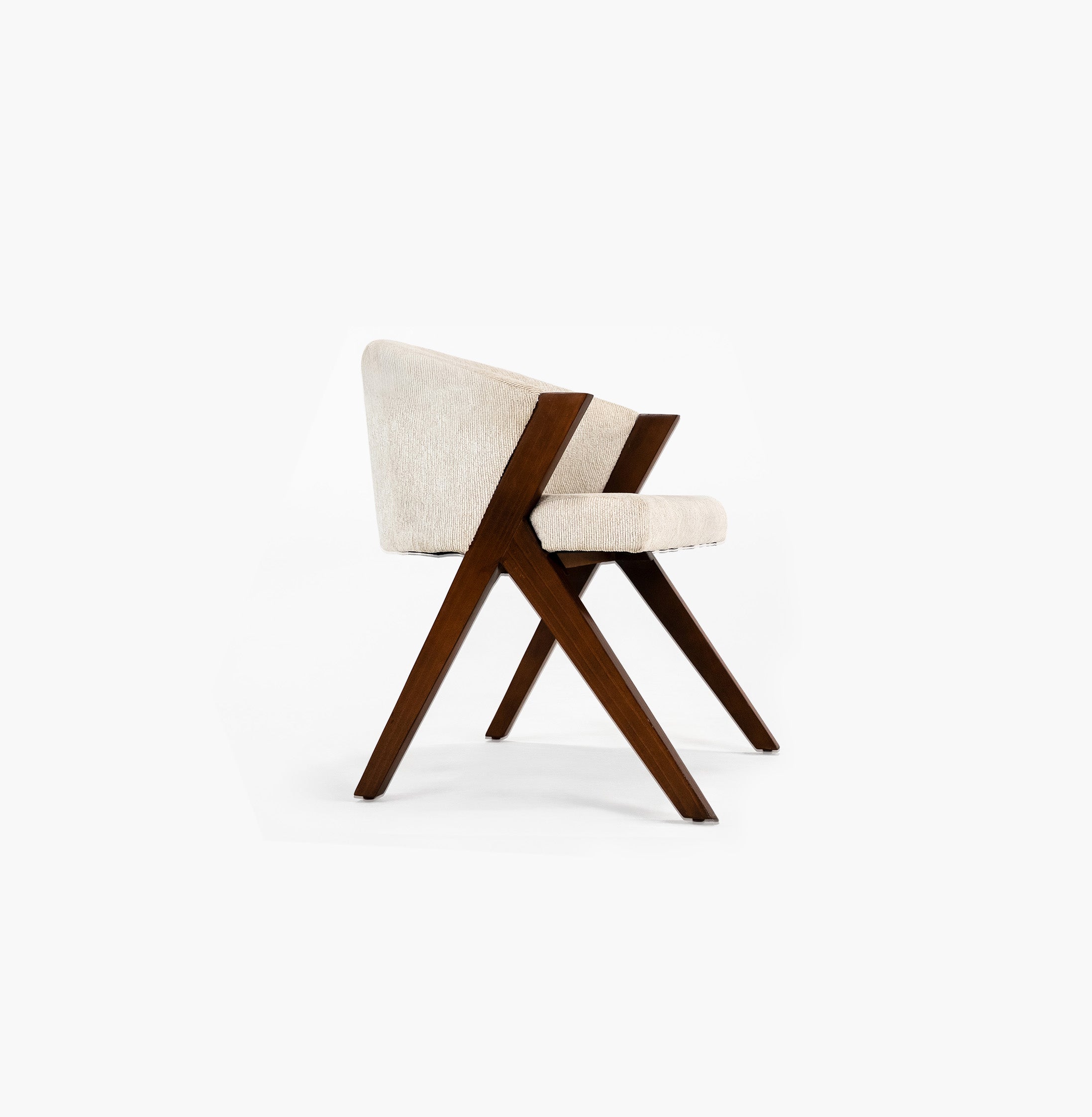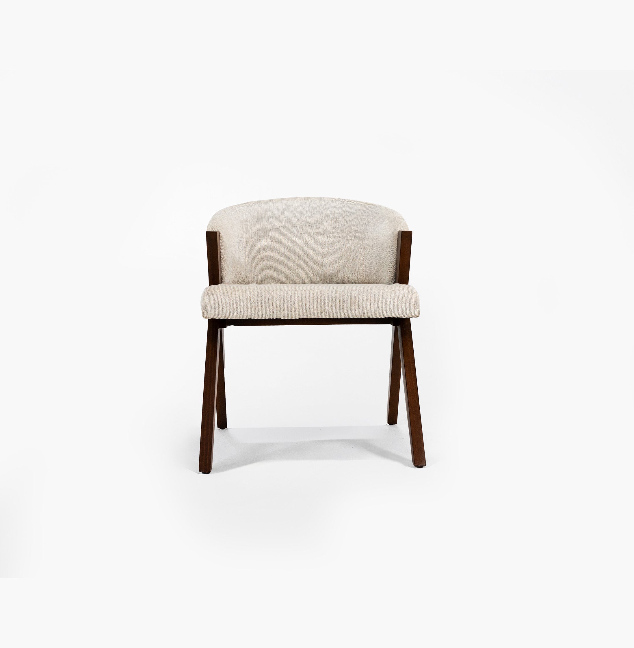 Esta silla combina diseño contemporáneo y confort artesanal. Su estructura, fabricada en madera de pino, aporta solidez y una calidez natural que resalta las líneas geométricas del modelo. El asiento y el respaldo están tapizados con espuma de alta densidad, ofreciendo un soporte firme y cómodo, mientras que el tapiz de alta calidad envuelve la pieza con una textura suave y elegante. Su silueta en forma de “X” le da un carácter distintivo y moderno, ideal para espacios que buscan equilibrio entre estilo, confort y funcionalidad.