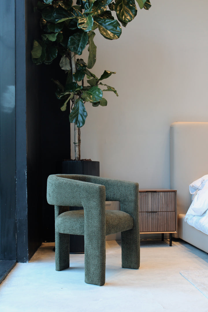 Fabricado con bastidor de madera de pino, reconocido por su resistencia y durabilidad. El bastidor está cuidadosamente forrado con espuma de alta densidad, que ofrece un soporte firme y un confort prolongado. Además, está tapizado con tela a elegir, permitiendo una personalización completa para adaptarse a cualquier estilo y preferencia.