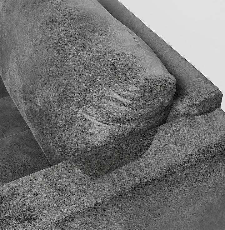 Sofá con bastidor fabricado en madera sólida de pino, que garantiza resistencia y durabilidad. Su base de acero proporciona estabilidad y un estilo moderno, mientras que el tapizado en espuma de alta densidad y tela de calidad asegura confort y elegancia.